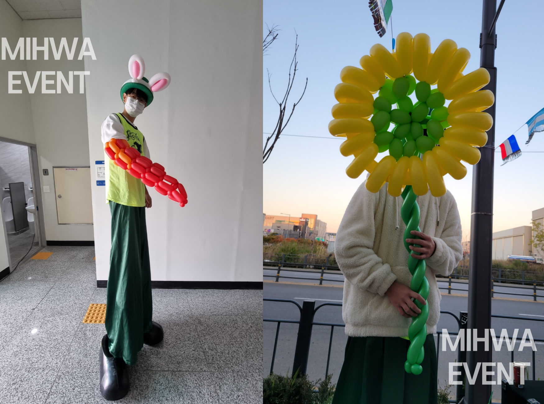키다리 퍼포머가 직접 풍선을 제작해 주며