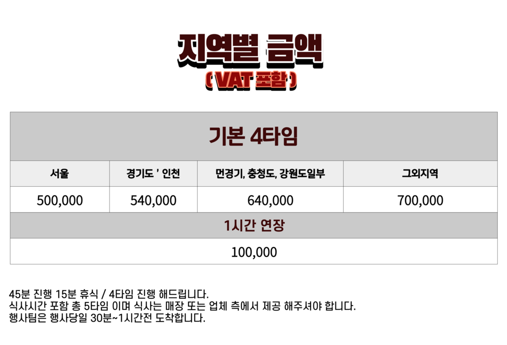 행사요일 ( 월 / 일 ) & 행사시간 5시간 (식사시간포함)