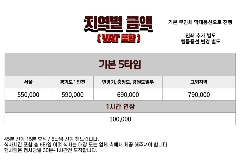 행사요일 ( 월 / 일 ) & 행사시간 6시간 (식사시간포함)